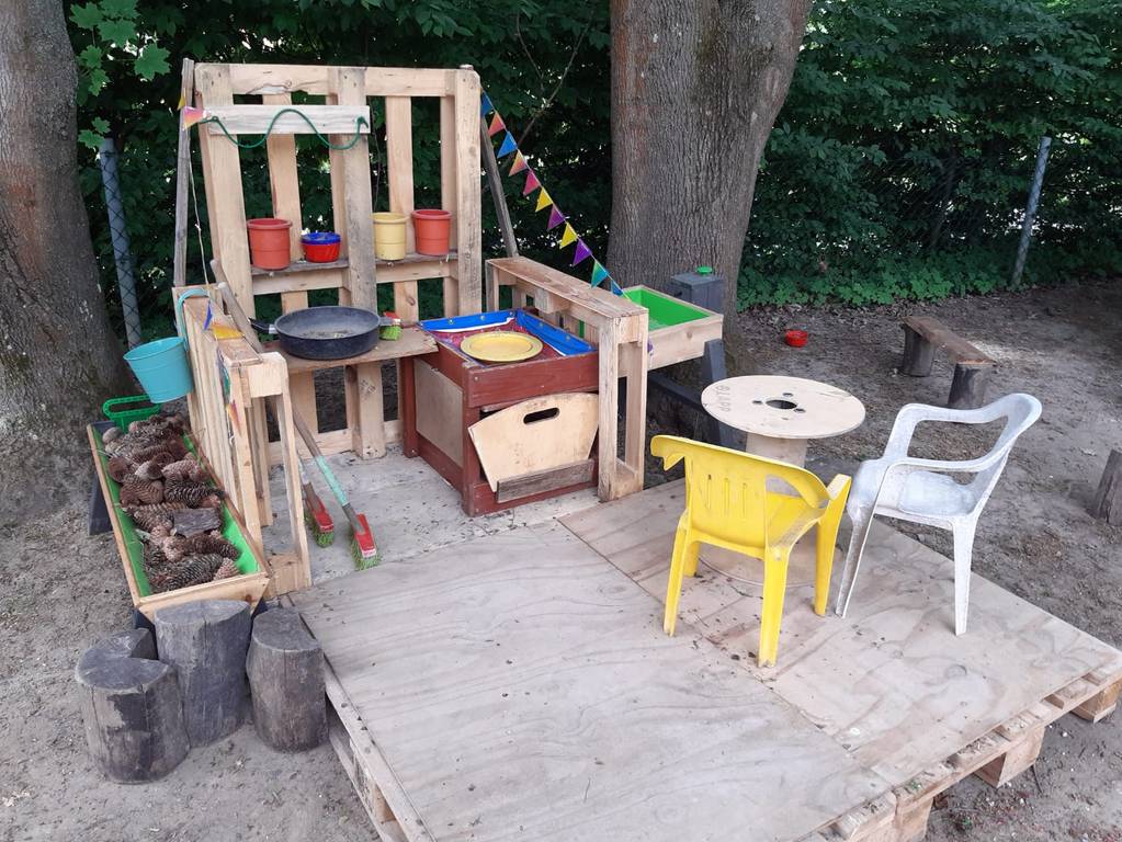 Rückblick der letzten Wochen im KiGaWi Seit Mai ist nach einigen Wochen wieder Leben im Kindergarten der Wilferdinger Straße eingezogen. Zuerst im wöchentlichen Wechsel ab Juni durften alle Kinder wieder gemeinsam in den Kindergarten zurückkehren. Um die schwierige Zeit während Corona etwas erträglicher zu gestalten, haben die Erzieherinnen den Kindergarten kurzerhand zum Filmstudio umgewandelt. Eigens gespielte und aufgenommene Videos mit biblischen Geschichten, Bilderbüchern und Bewegungseinheiten, sowie Mal- und Bastelangeboten wurden an die Kinder geschickt. Somit konnten sie daheim jede Menge erleben und hatten ein Stück Kindergarten zu Hause. Zu Ostern gab es dann Ostergrüße mit der Ostergeschichte, sowie Ideen zum Backen und Lesen. Natürlich haben wir auch an die Mamas gedacht und ein Backvideo für einen Muttertagskuchen gedreht und aufgenommen und an die Papas verschickt. Vor die Tür stellten wir selbstgebastelte Blumen, die die Kinder sich abholen konnten. Im Schaukasten am Kindergarten motivierten Bilder und Texte immer wieder zum Durchhalten. Für alle lautete das Motto: "Gemeinsam schaffen wir das!" Nebenbei waren die Erzieherinnen auch als Handwerker tätig. Es wurde gesägt, gebohrt und geklopft und nach vielen Stunden intensiver Arbeit entstanden aus Holzpaletten eine Matschküche
