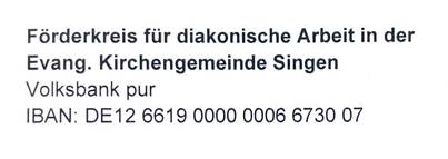 Spendenkonto Förderkreis für diakonische Arbeit in der Evang. Kirchengemeinde Singen